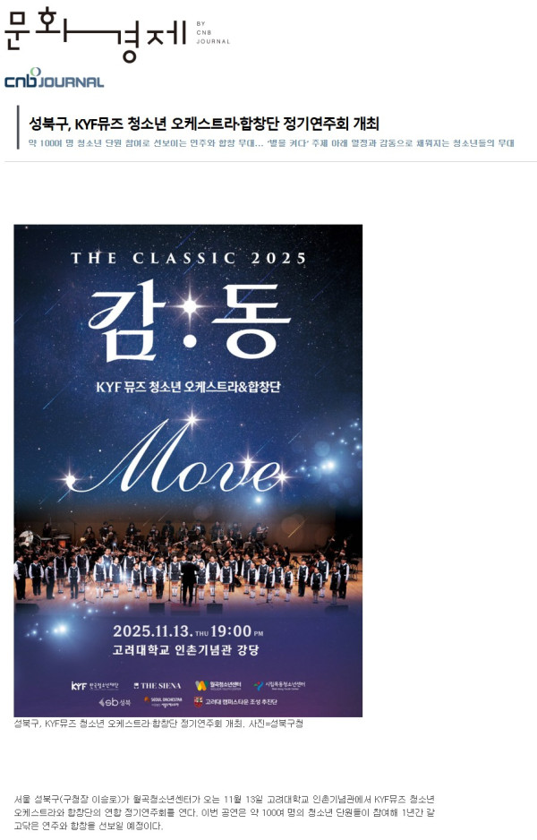 [보도자료] 성북구, KYF뮤즈 청소년 오케스트라·합창단 정기연주회 개최