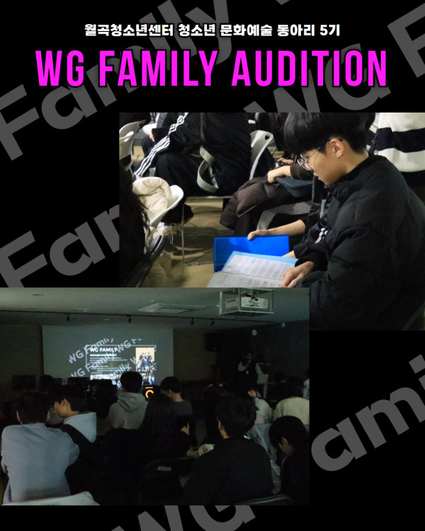 월곡청소년센터 2층 대강당에서 ‘WG Family’ 5기 가입 오디션이 진행되었습니다!