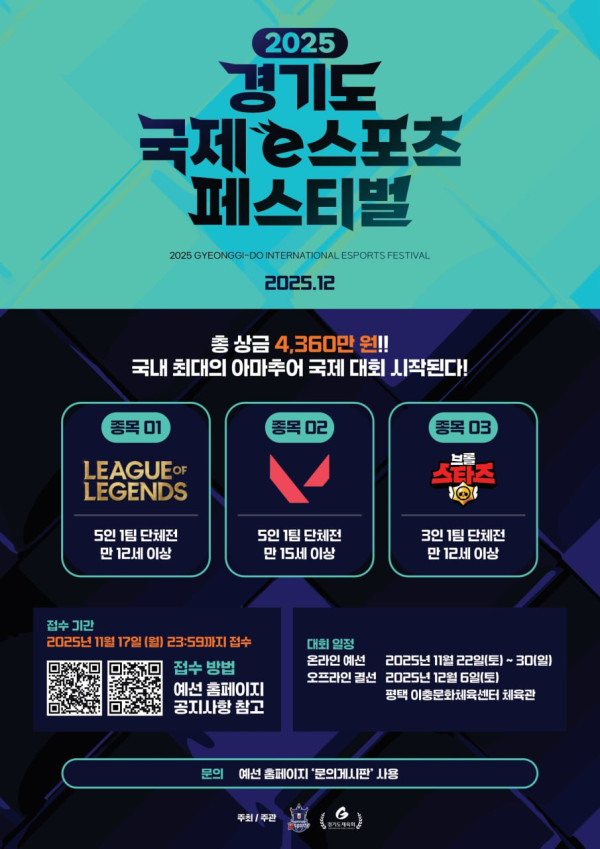 3. 내용: 리그오브레전드 / 브롤스타즈 / 발로란트 대회  / 총상금 4,360 만원