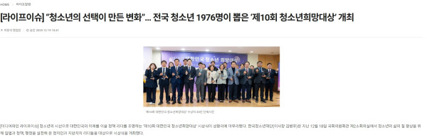 [보도자료] [라이프이슈] “청소년의 선택이 만든 변화”… 전국 청소년 1976명이 뽑은 ‘제10회 청소년희망대상’ 개최