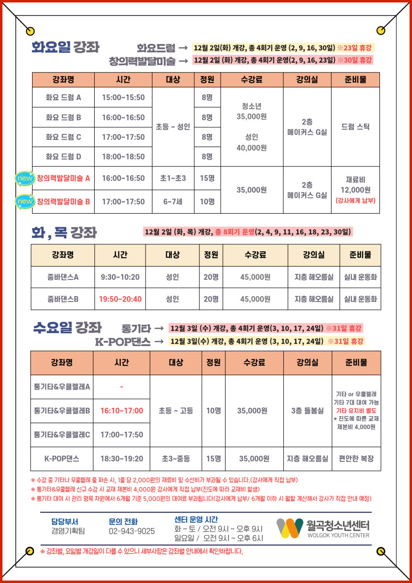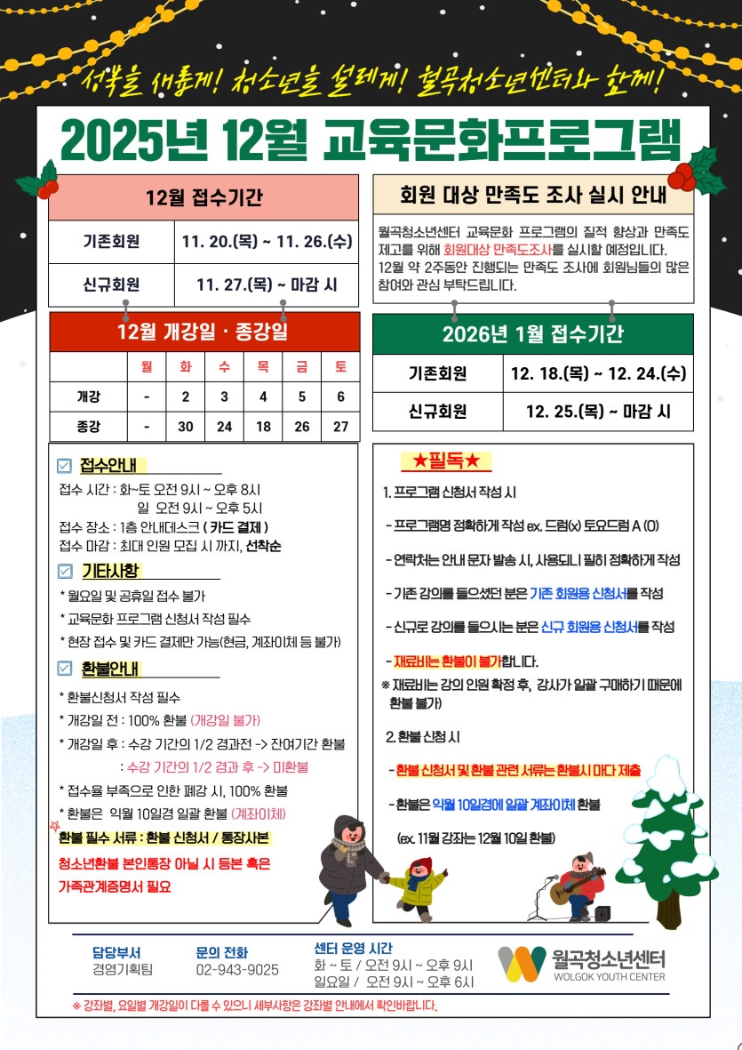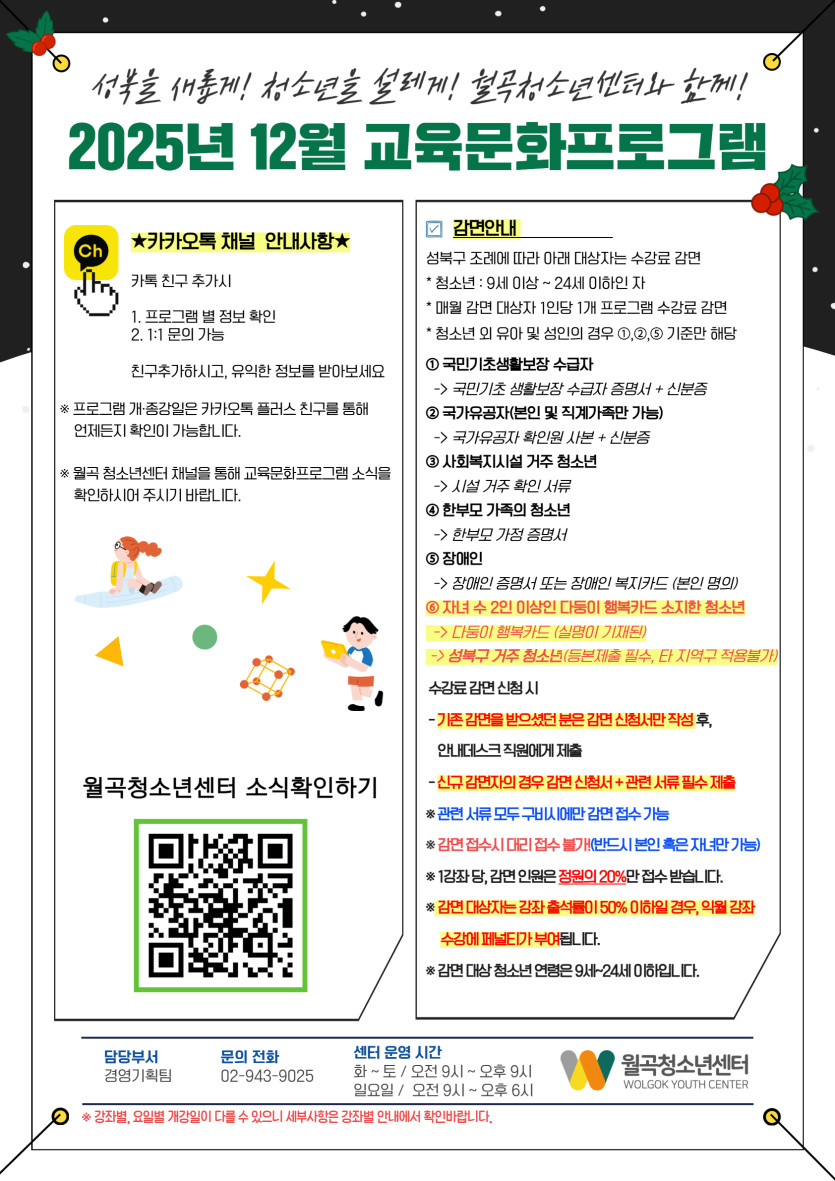2025년 12월 교육문화 프로그램 접수 안내 드립니다!
