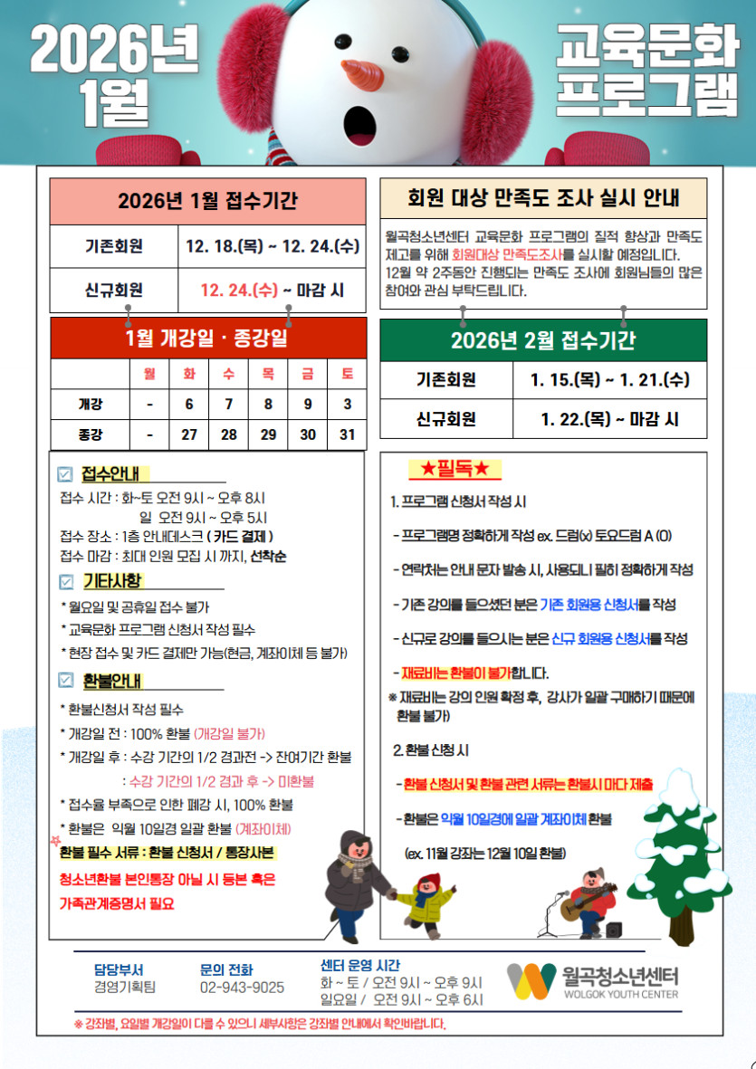 2026년 1월 교육문화 프로그램 접수 안내 드립니다!
