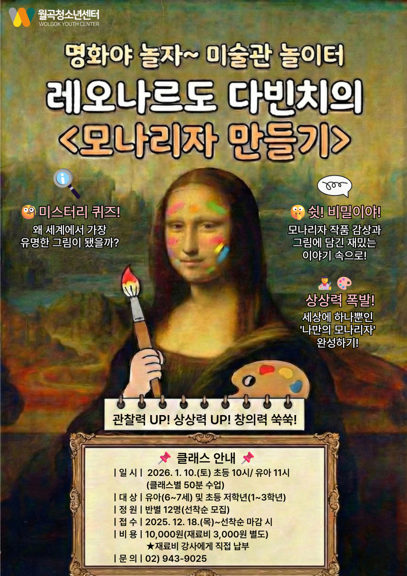 [교육문화] 26년 1월 원데이클래스 :: 명화야 놀자~ 미술관 놀이터 레오나르도 다빈치의 「모나리자 만들기」