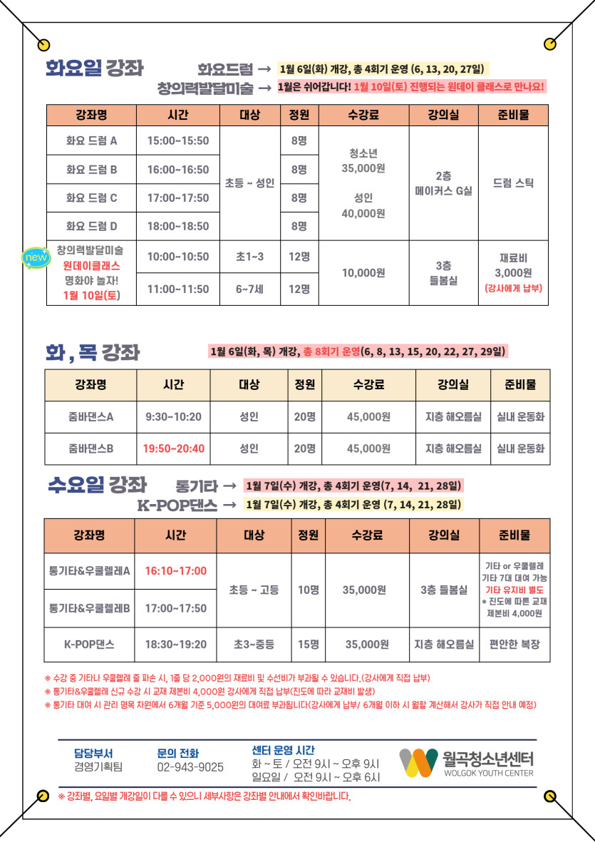 다채롭게 구성된 문화예술 프로그램을 월곡청소년센터에서 만나보세요!
