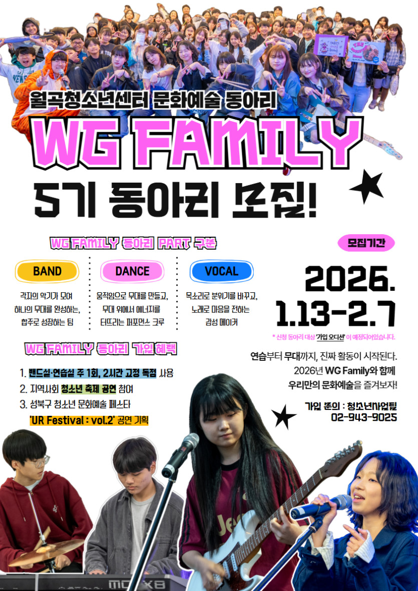 2026 청소년 문화예술 동아리 'WG FAMILY' 5기 모집