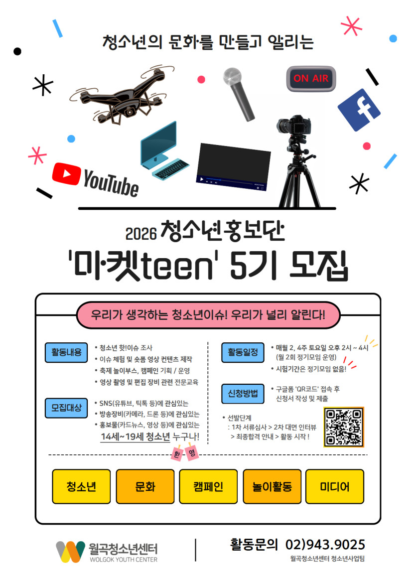 [ 2026 월곡청소년센터 청소년홍보단 ‘마켓teen’ 5기 단원 모집! ]