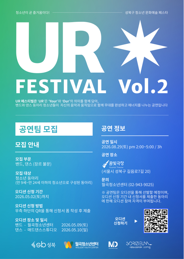 [ 성북구 청소년 문화예술 페스타 'UR FESTIVAL : Vol.2' 공연팀 모집 시작! ]